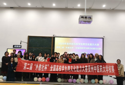 “外教社杯”全国高校学生跨文化能力大赛于2023年入选教育部中国高等教育学会《全国普通高校大学生竞赛分析报告》竞赛目录,是外语类学科竞赛的权威赛事之一。为选拔优秀学生参加省赛,外语教学部英语俱乐部于2025年10月22日在国合楼2-7举办了第二届“外教社杯”全国高校学生跨文化能力大赛贵州中医药大学校赛决赛,出席的评委老师包括外语教学部主任陈嘉老师,人文与管理学院李粲老师,公共英语第二教研室蒋建勇、杨茜茜老师,公共英语第一教研室饶娜老师,以及英语俱乐部指导陈颜、陈瑞清老师。
