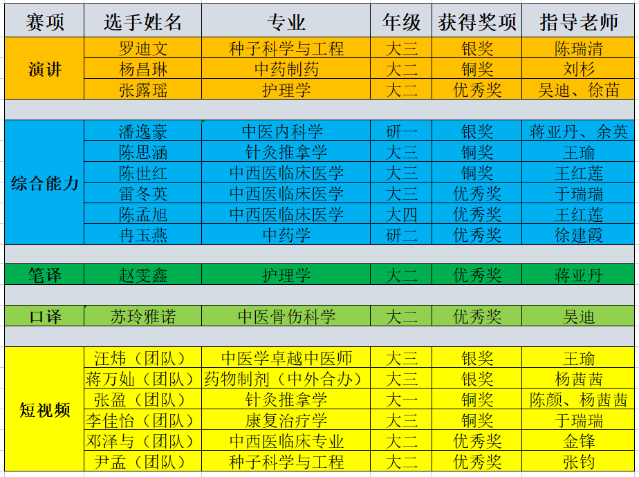 从英语演讲的现场表达,到短视频创作的创意呈现,再到综合能力、笔译、口译的专业比拼,本次大赛的五大竞赛项目,全面检验了参赛学生的外语综合应用能力与跨文化沟通水平。其中,我校部分选手创作的短视频作品尤为突出--他们以新媒体为载体,用流利的英语讲述中医药故事与中国故事,深入挖掘新时代背景下的“中医智慧”,让中医药文化的独特魅力通过镜头走向更广阔的舞台。